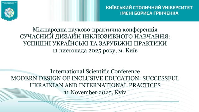 On November 11, 2025, as part of the World Science Day for Peace and Development, the Faculty of Psychology, Social Work, and Special Education at Borys Grinchenko Kyiv Metropolitan University held the International Scientific and Practical Conference “Modern Design of Inclusive Education: Successful Ukrainian and International Practices.”