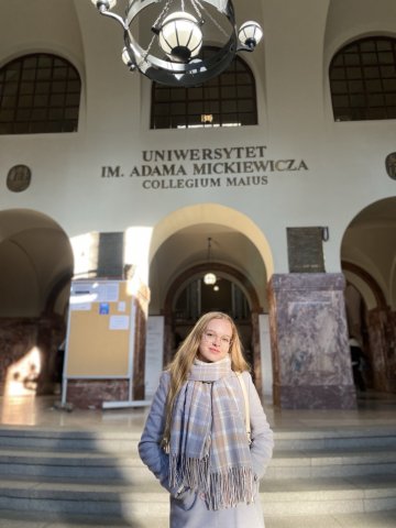From October 1, 2025 to February 18, 2026, Maryna Sivkovska, a student of the first (Bachelor’s) level of higher education at Borys Grinchenko Kyiv Metropolitan University, Faculty of Pedagogical Education, majoring in Primary Education, completed a semester of study at Adam Mickiewicz University (Republic of Poland, Poznań) under the Erasmus+ academic mobility program.