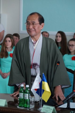 After that a solemn meeting of the Academic Council began where the mayor spoke Kyoto "Kyoto - a city of world culture: the power of culture for peace in the world." During his speech Daisaku Kadokawa detailed about long-term relationship between Ukraine and Japan, especially emphasizing the friendly relations between Kyiv and Kyoto.